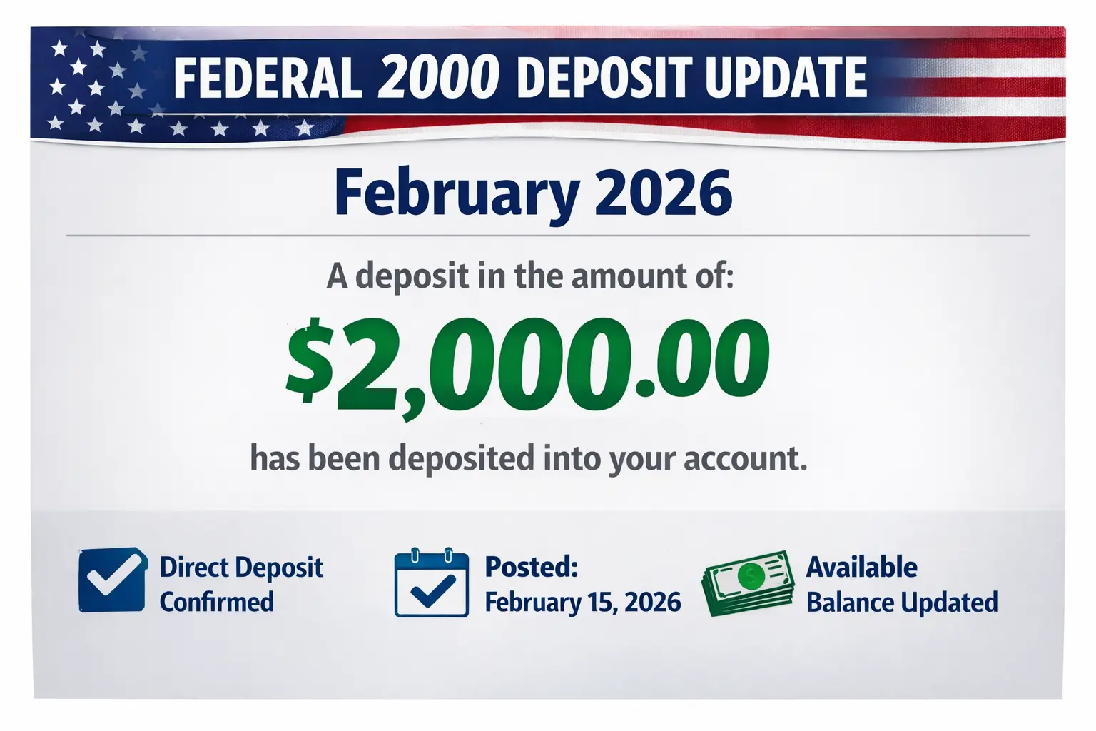 Latest Federal $2000 Deposit Update for February 2026